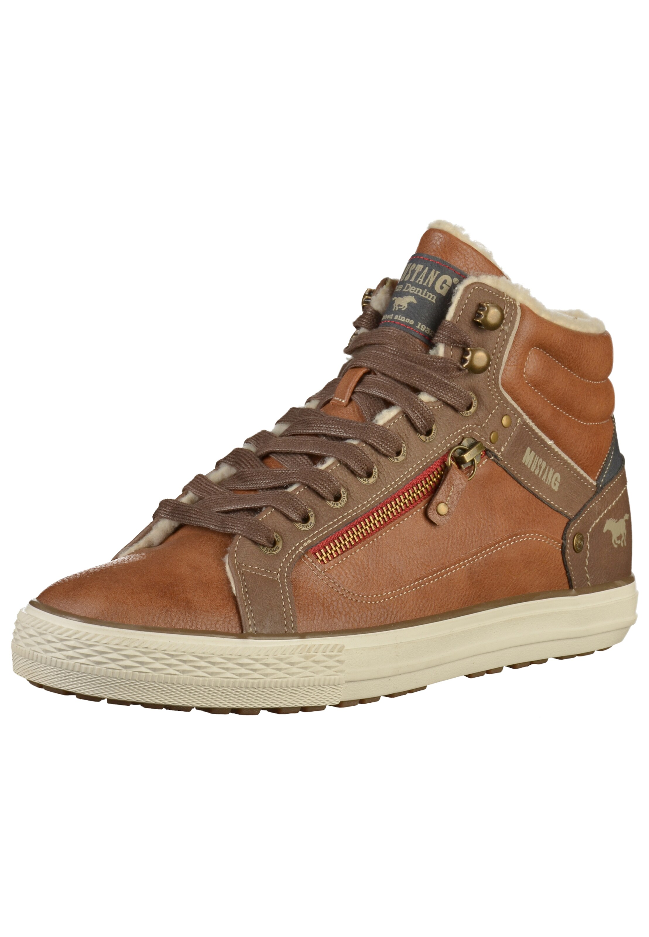 In Sachen Kleidung ist das Label vor allem bekannt für solide Jeans-Mode. Der robuste Look, der den Denim-Teilen anhängt, ist auch Teil des Sortiments stilvoller MUSTANG Herrenschuhe für Männer, die mit beiden Beinen im Leben stehen und wissen, was sie (stiltechnisch) wollen. Ein aktiver Lifestyle, eine unkomplizierte, aber doch zielsichere Persönlichkeit und ein Faible für Looks, die zwar nicht extravagant, aber doch individuell erscheinen begründet die idealen Voraussetzungen für ein erfolgreiches Shopping-Erlebnis in Onlineshop von ABOUT YOU. Hier präsentiert Dir MUSTANG facettenreiche Looks für verschiedene Anlässe. Sneaker erscheinen dabei selten unifarben und wirken dabei dennoch schlicht. Harmonische Kombinationen aus natürlichen, dezenten Nuancen in Rot, Grau und Grün sorgen für einen dynamischen Auftritt. Die facettenreiche Farbwahl setzt sich auch in der Strukturierung fort, indem die Oberfläche der schnittigen Modelle aus abwechslungsreichen Elementen und Materialmixturen geschustert wird. Lässige Slip Ons mit breiter Gummisohle in verwaschenem Textil-Style sorgen für einen coolen Vintage Touch, während eine gepolsterte Knöchelparty an modischen High Cuts für Skater-Attitüde steht. Schnürungen, Zipper und Sohlenpartie vereinen sich zu ergonomischen Tretern, mit denen Du im urbanen Kontext ebenso stilvoll auftrittst, wie in der freien Natur. Brogue-Details und ein eleganter Mix aus glatter Oberfläche und romantischem Lochmuster zaubern im Bereich der Halbschuhe tolle Business-Modelle in warmen Brauntönen. Doch nicht nur die klassischen Looks prägen das Sortiment facettenreicher Herrenschuhe von MUSTANG – Denim-Optik und Schicht-Design an den Sohlen stehen für moderne Lässigkeit und sportive Coolness.